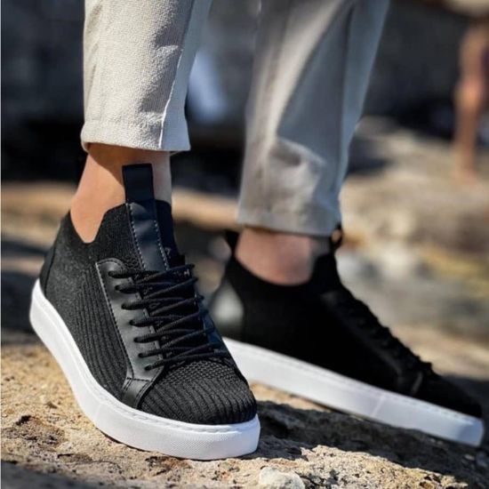 Il s'agit de la chaussure décontractée pour hommes Kuback KB-112 en tricot noir avec lacets.