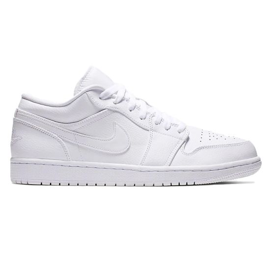 La Air Jordan 1 Low Triple White est dotée d'une tige en cuir blanc monochrome avec des lacets et d'une semelle en caoutchouc de la même couleur. Taille: 40,41,42,43,44 et 45