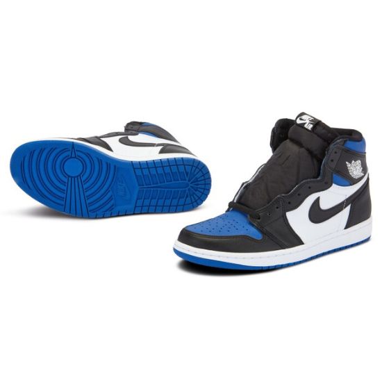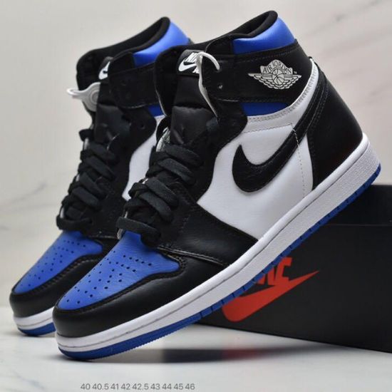 La Air Jordan 1 High University Blue possède une empeigne en cuir foulonné blanc et noir, ornée de renforts en cuir synthétique. Taille: 40,41,42,43,44,45 et 46