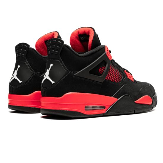 La Air Jordan 4 Retro Red Thunder présente une empeigne en nubuck noir, couplée à des rappels de rouge vif sur la midsole et les œillets. Taille: 40,41,42,43,44 et 45