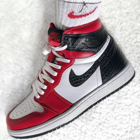 La Air Jordan 1 High OG Wmns Satin Red remixe la Chicago Bulls. Le matériau satiné se mélange à du snakeskin. La fausse peau de serpent accentue le caractère luxueux de cette AJ1 rouge et noire. Taille: 40,41,42,43,44,45 et 46