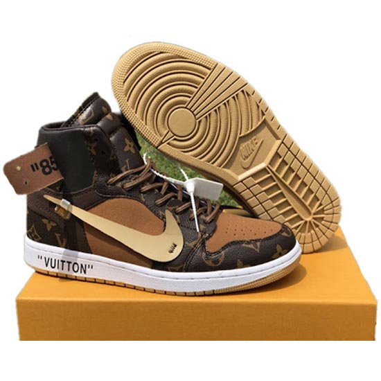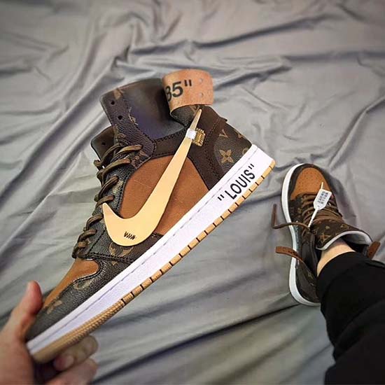 En résulte une Air Jordan 1 x Off-White au look deconstruct en cuir et suede premium dans des teintes marrons, reprenant le fameux monogram LV et s'inspirant des malles de la maison française. Taille: 40,41,42,43,44 et 45