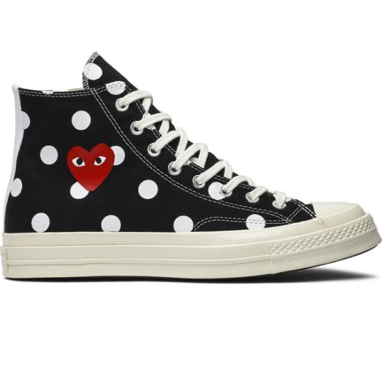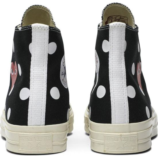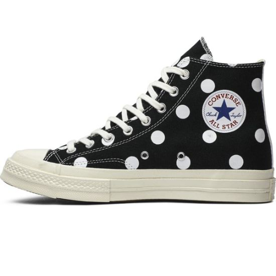 The Comme des Garçons x Chuck Taylor All Star 70 Hi 'Black Polka Dot' retains the design DNA of the iconic silhouette, featuring a black canvas upper. Taille: 38,39,40,41,42,43 et 44