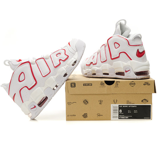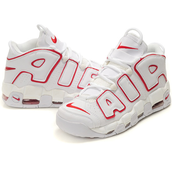 La Chaussure Nike Air More white logo red, arbore un style audacieux avec ses motifs et son texte bordé de Rouge sur l'empeigne.Taille: 40,41,42,43,44 et 45