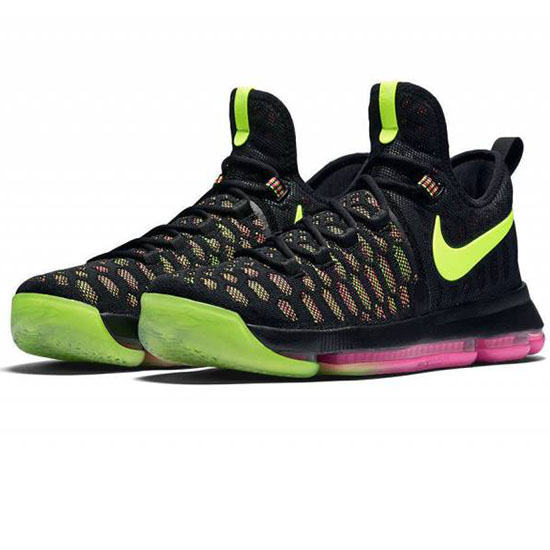 La nouvelle Nike KD 9 de Kevin Durant adopte le coloris "Oreo" pour l'été. Le modèle mi-montant combine du Flyknit noir et rose avec des éléments vert. Taille: 40,41,42,43,44 et 45