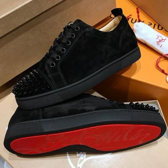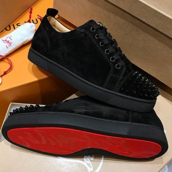 Christian Louboutin baskets en daim noir Ornements cloutés sur le panneau des orteils, œillets décoratifs sur le côté, semelle intercalaire en caoutchouc texturé, semelle rouge emblématique, bout rond. Taille: 40,41,42,43,44 et 45