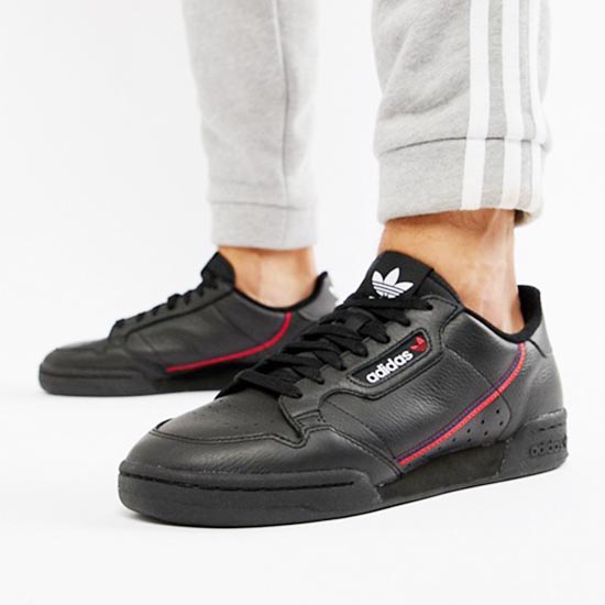 Livré dans des cuirs noirs lisses, le «Core Black» Continental remplace le OG par une bande bicolore découpant les parois latérales; optant pour un design rouge et noir puissant. Taille: 40,41,42,43,44 et 45