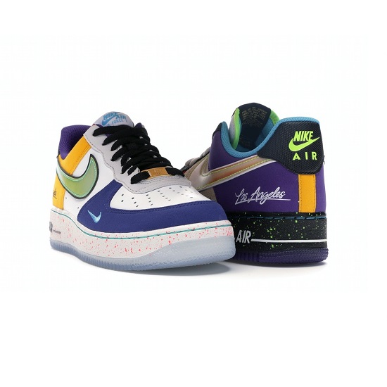 Los Angeles s’étale sur la Air Force 1. Les déclinaisons de la Air Force 1 sont tellement nombreuses que rares sont celles qui sortent désormais du lot. Ce sera le cas pour le coloris « What The LA. ». Taille: 40,41,42,43,44 et 45