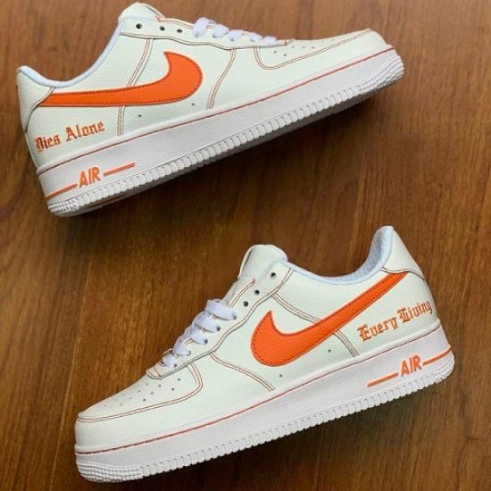 La Nike Air Force 1 Low White Orange x Custom Vlone est une chaussure de basket classique, fabriquée à partir d'une combinaison de cuir et de textiles de première qualité. Taille : 40,41,42,43,44 et 45