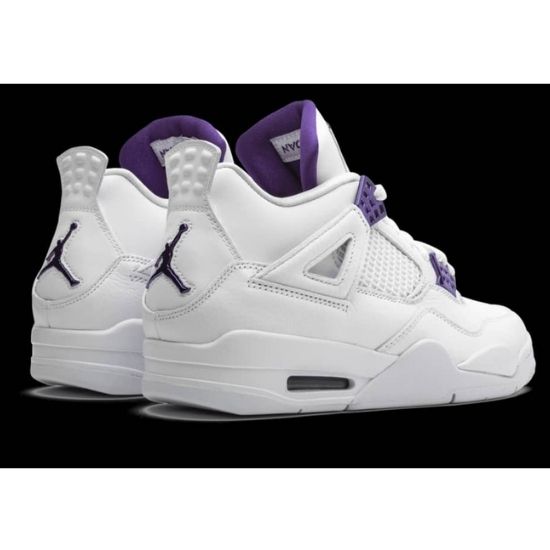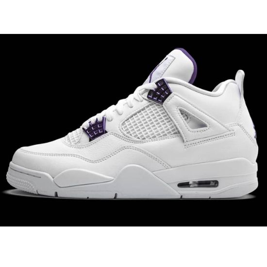La Air Jordan 4 Retro Metallic Purple s’habille d’un upper en cuir premium blanc, accompagné d’empiècements quadrillés propres au modèle. Taille: 40,41,42,43,44 et 45