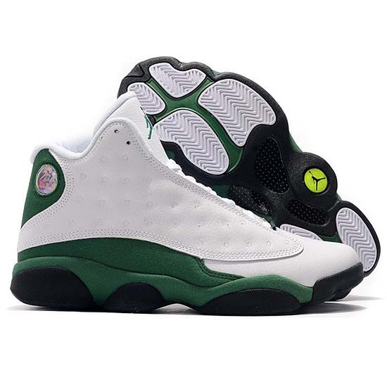 It features a White leather base with Green suede overlays paired, Black detailing and 3M reflective hints along the piping. Air Jordan 13 Lucky Green. Taille: 40,41,42,43,44 et 45