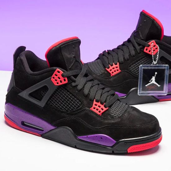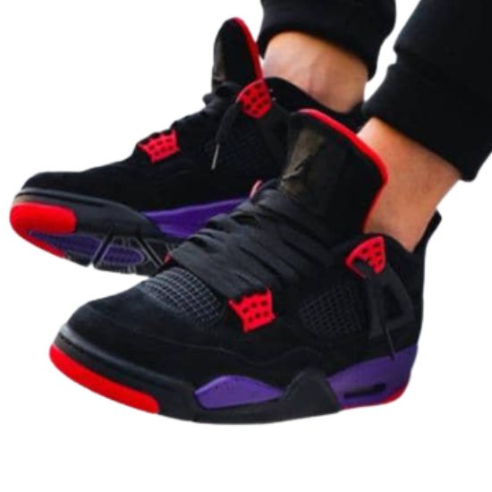 Reprenant les couleurs des Raptors, la Air Jordan 4 présente un upper noir agrémenté de touches de violet au niveau de la doublure. Taille: 40,41,42,43,44 et 45