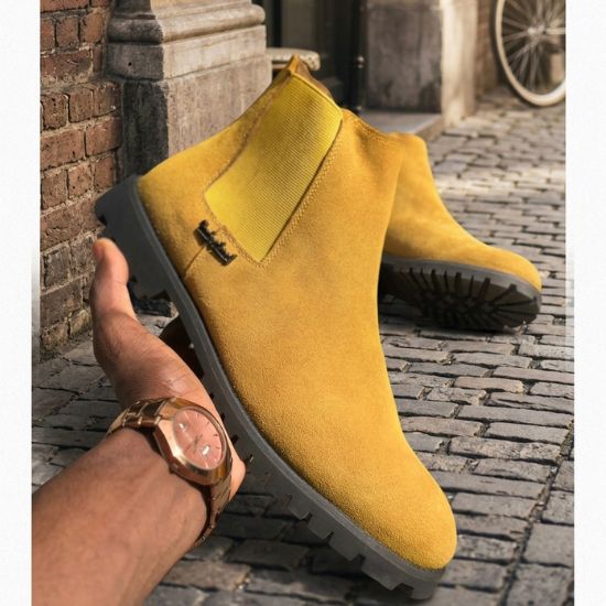 DescriptionCes bottines sont des chaussures de type Chelsea en daim jaune.