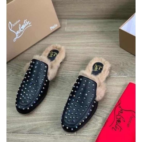 Mules en cuir noir Princetown doublées de fourrure louboutin. Taille: 40,41,42,43,44 et 45