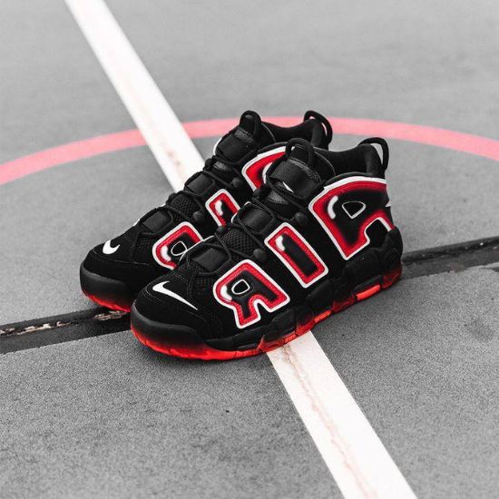 La Chaussure Nike Air More white logo red, arbore un style audacieux avec ses motifs et son texte bordé de Rouge sur l'empeigne. Taille: 40,41,42,43,44 et 45
