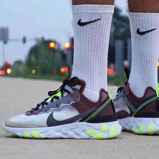 La laboratoire de recherche sportive de Nike propose cette saison des chaussures de sport innovantes Element 87, un style imprégné de la technologie légère Epic React. Alimenté par les données cartographiques thermiques. Taille: 40,41,42,43,44 et 45