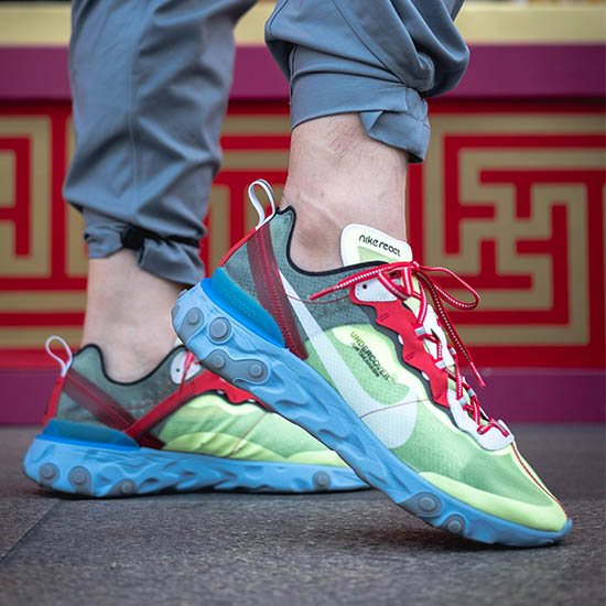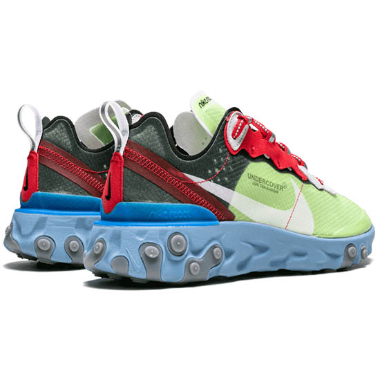 Associant leur semelle nouvellement développée aux styles de la marque japonaise UNDERCOVER, la tige arrière dépouillée voit sa base en TPE transparente trempée dans une brume verte, avec l'inscription «UNDERCOVER». Taille: 40,41,42,43,44 et 45