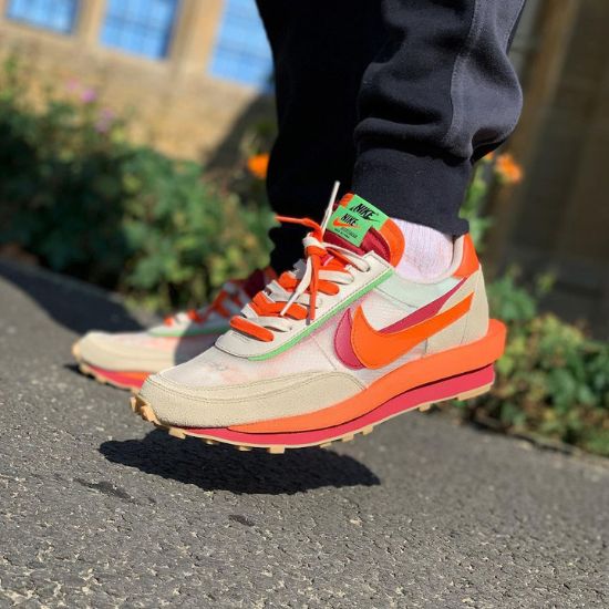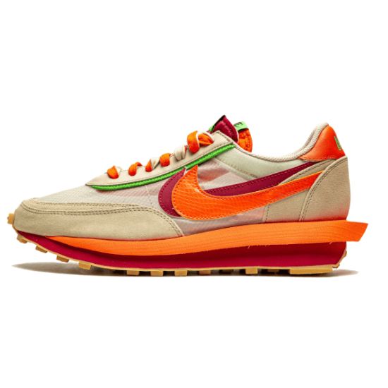 La Nike LD Waffle Sacai Clot Net Orange Blaze est une basket à la silhouette unique. Elle se pare d’une base TPE translucide, avec des superpositions en daim beige. Taille: 40,41,42,43,44 et 45