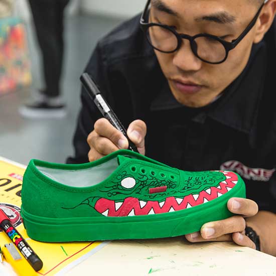 Felix Shaozi, gagnant du concours Vans Asia Custom Culture de 2017, a eu la possibilité de transformer ses créations en papier en une paire de baskets Vans, dont vous pouvez voir le résultat. Taille: 40,41,42,43,44 et 45